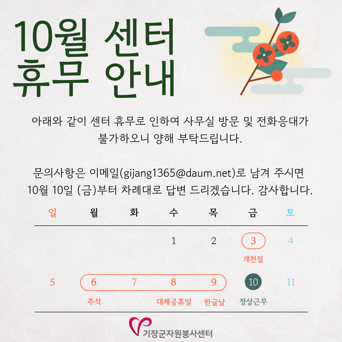 Á¦¸ñ 10¿ù ¼¾ÅÍ ÈÞ¹« ¾È³»