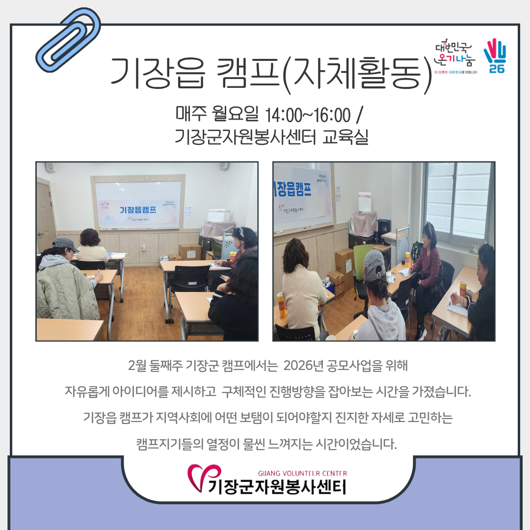 2026³â 2¿ù 9ÀÏ~ 13ÀÏ ±âÀåÀ¾ Ä·ÇÁ Ȱµ¿ ¼Ò½ÄÀÔ´Ï´Ù ^^