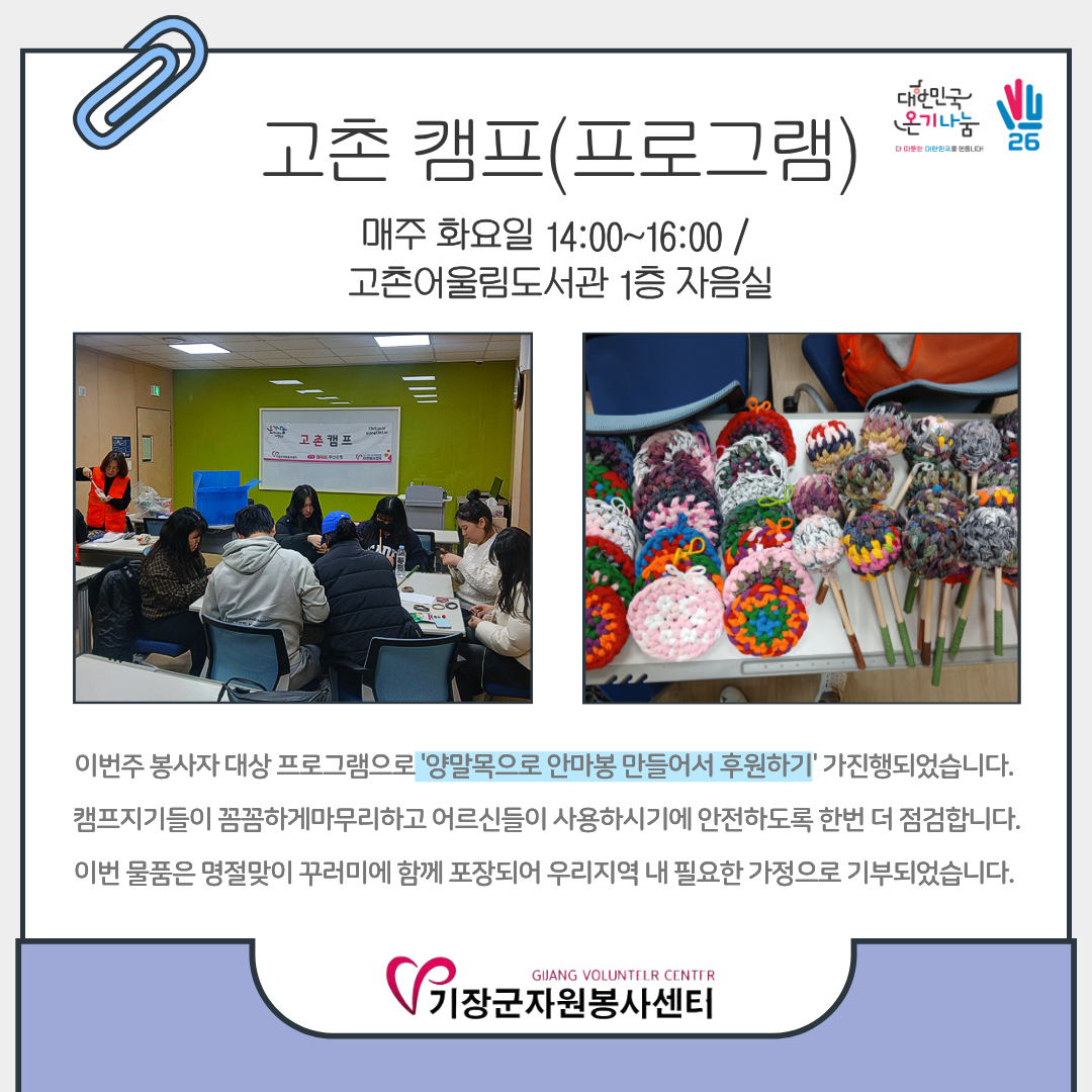 2026³â 2¿ù 9ÀÏ~ 13ÀÏ °íÃÌ Ä·ÇÁ Ȱµ¿ ¼Ò½ÄÀÔ´Ï´Ù ^^