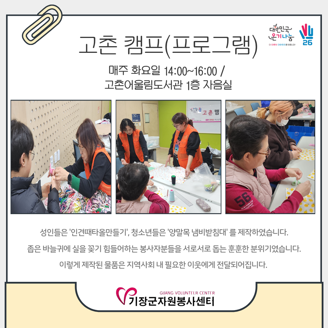 2026³â 2¿ù 23ÀÏ~ 27ÀÏ °íÃÌ Ä·ÇÁ Ȱµ¿ ¼Ò½ÄÀÔ´Ï´Ù ^^