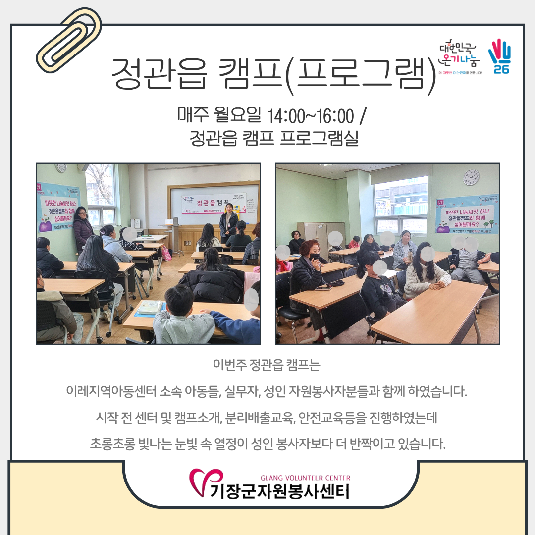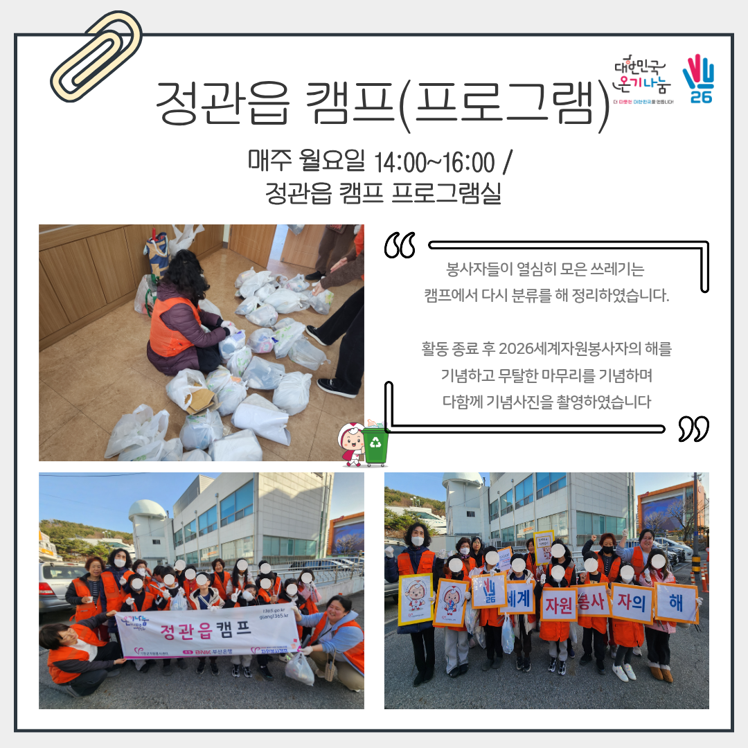 Á¦¸ñ [26.2.23~2.27] Á¤°üÀ¾ Ä·ÇÁ Ȱµ¿¼Ò½Ä