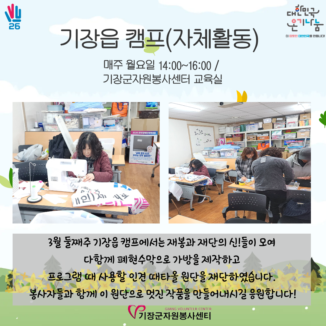2026³â 3¿ù 4ÀÏ~ 13ÀÏ ±âÀåÀ¾ Ä·ÇÁ Ȱµ¿ ¼Ò½ÄÀÔ´Ï´Ù ^^