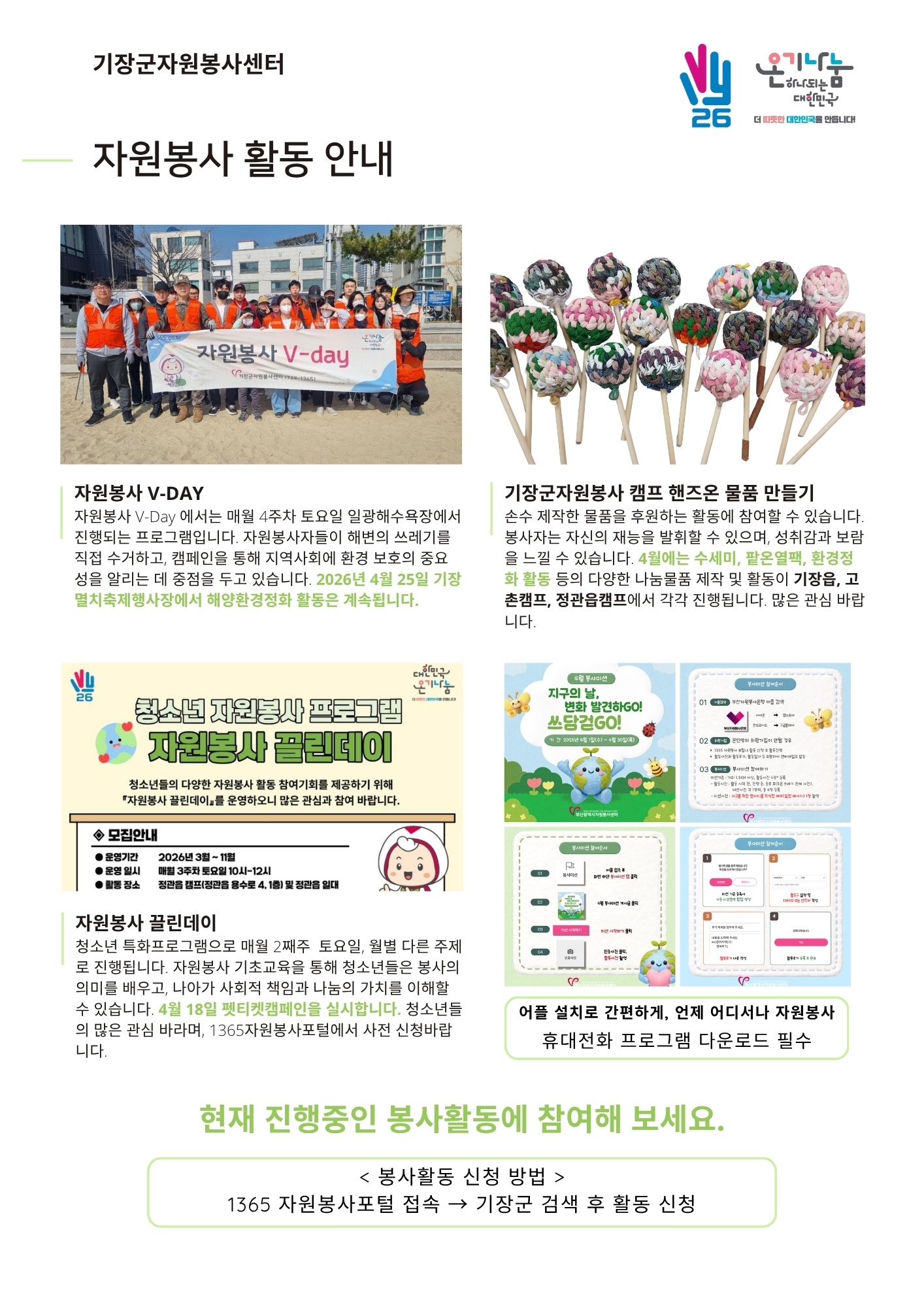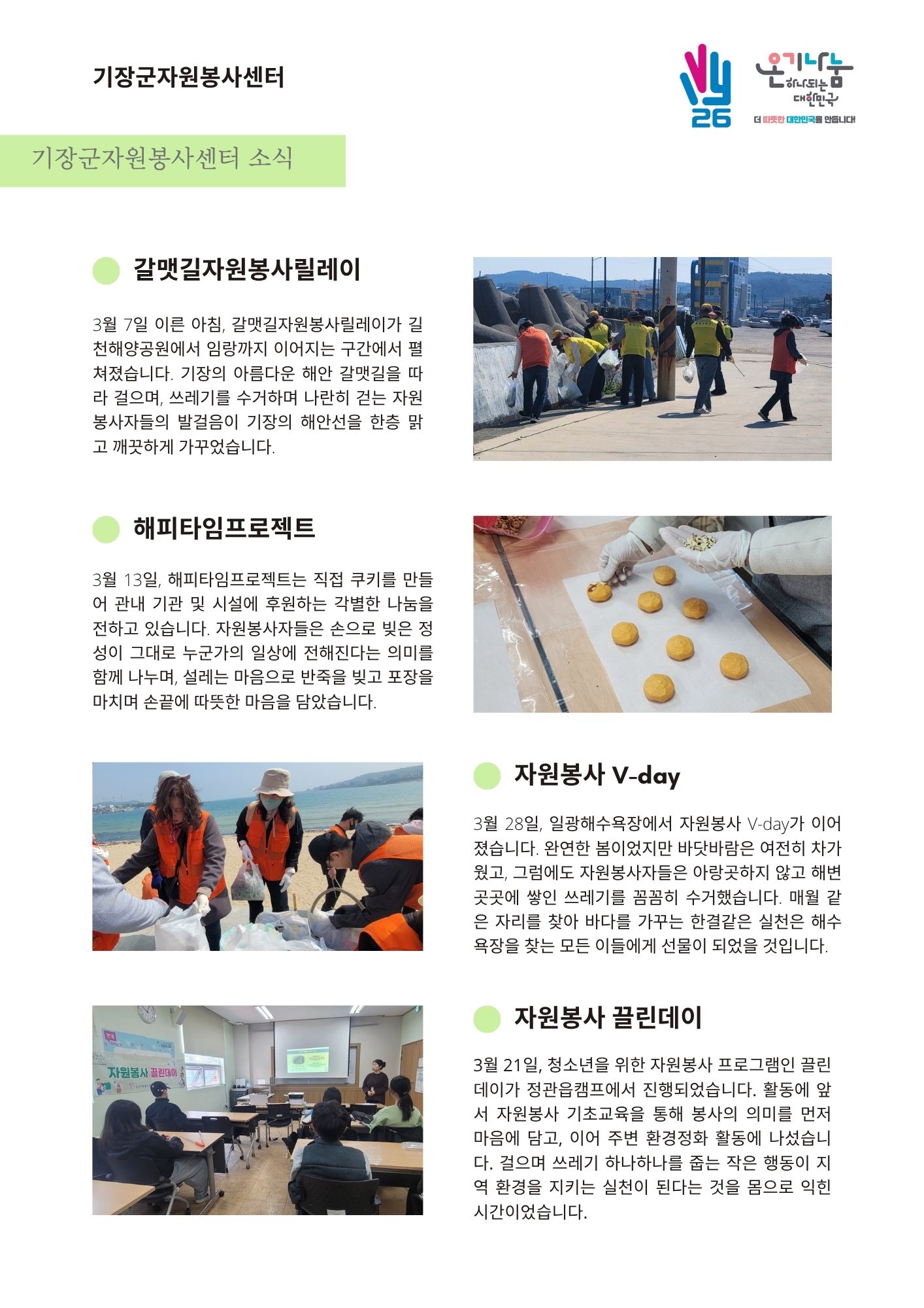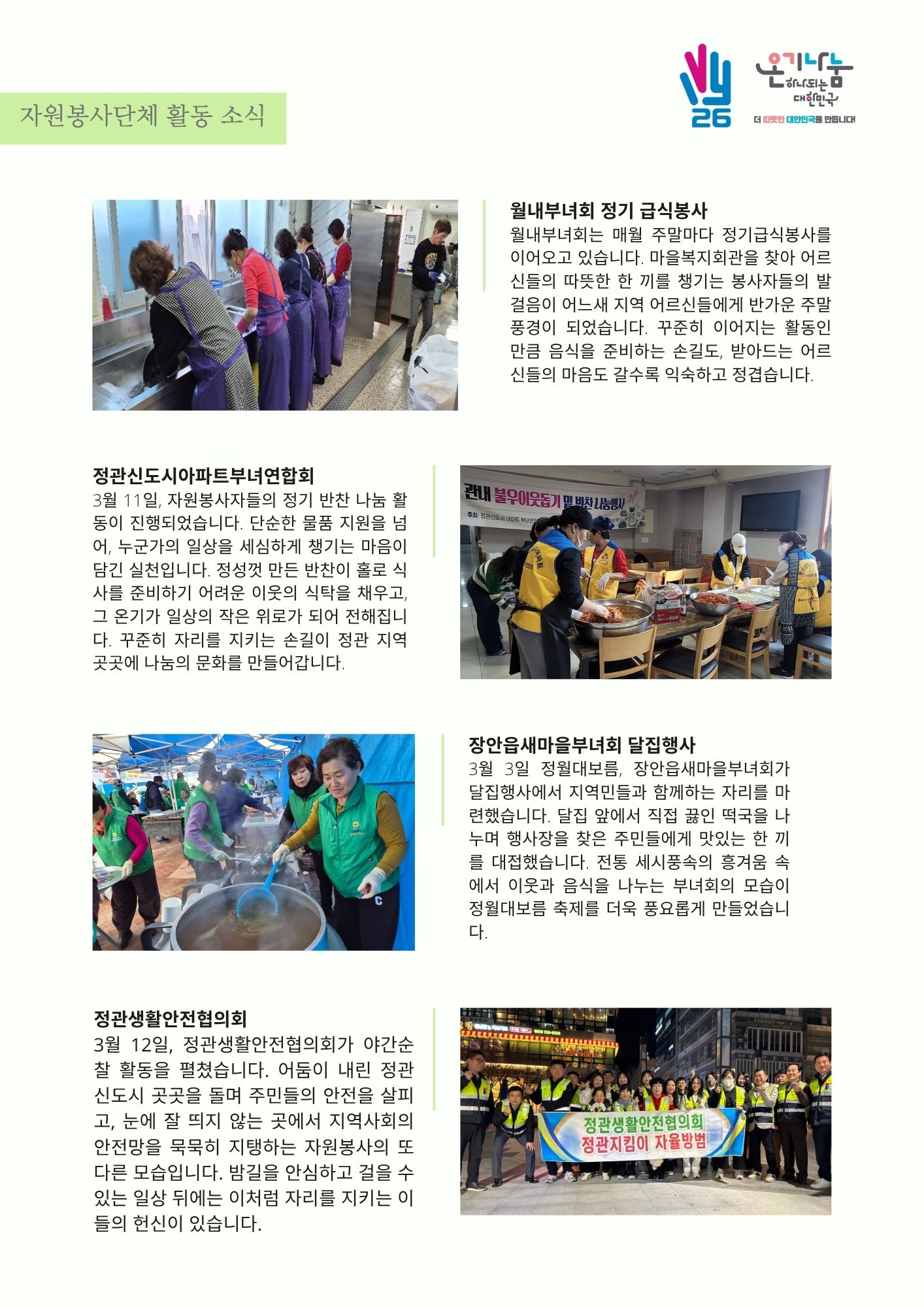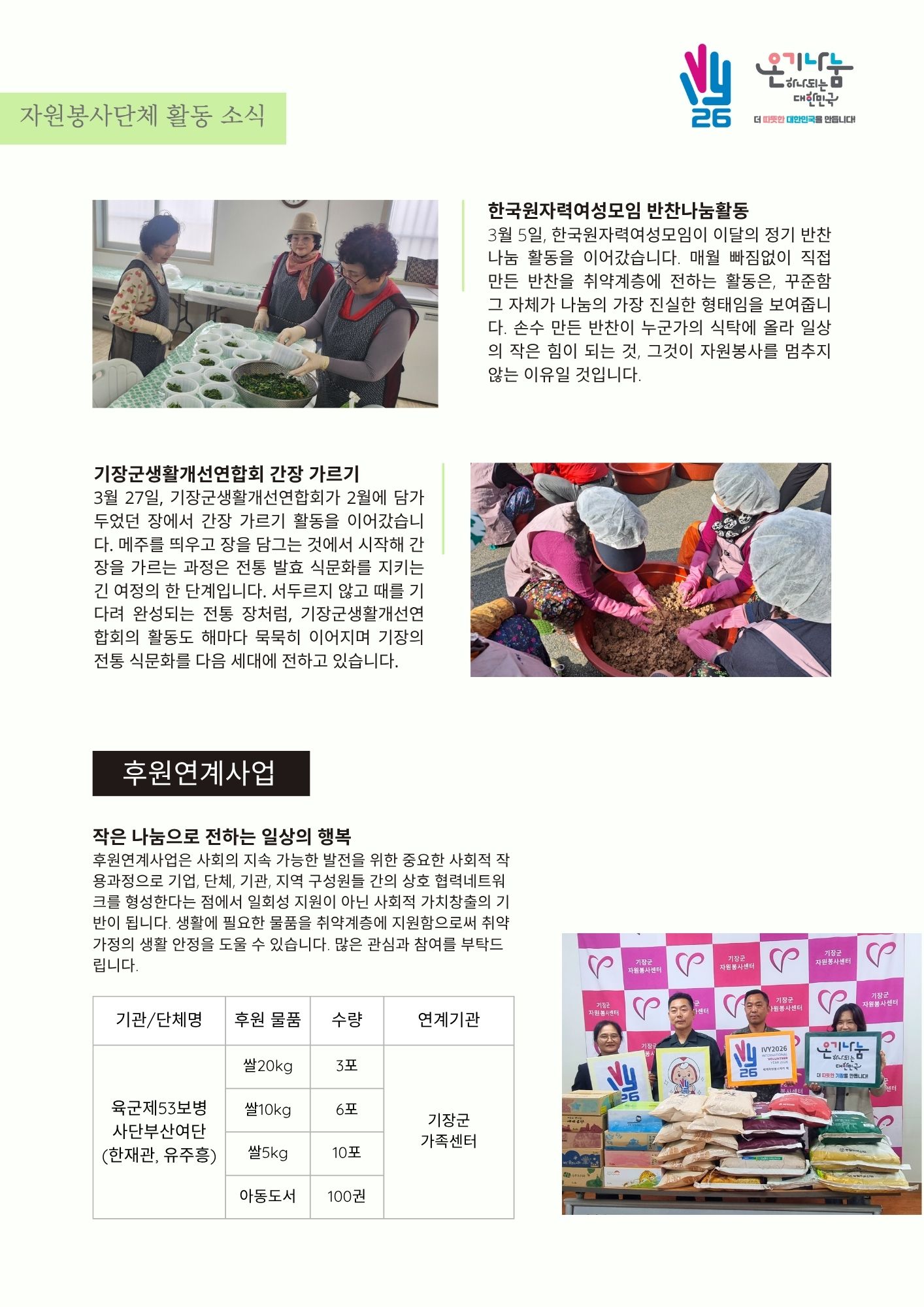 ¼¾ÅÍ ¼Ò½Ä, ºÀ»ç´Üü Ȱµ¿, ÈÄ¿ø¿¬°è»ç¾÷, 4¿ù ÇÁ·Î±×·¥ ¾È³»±îÁö ÇÑ ±Ç¿¡ ´ã¾Ò½À´Ï´Ù.