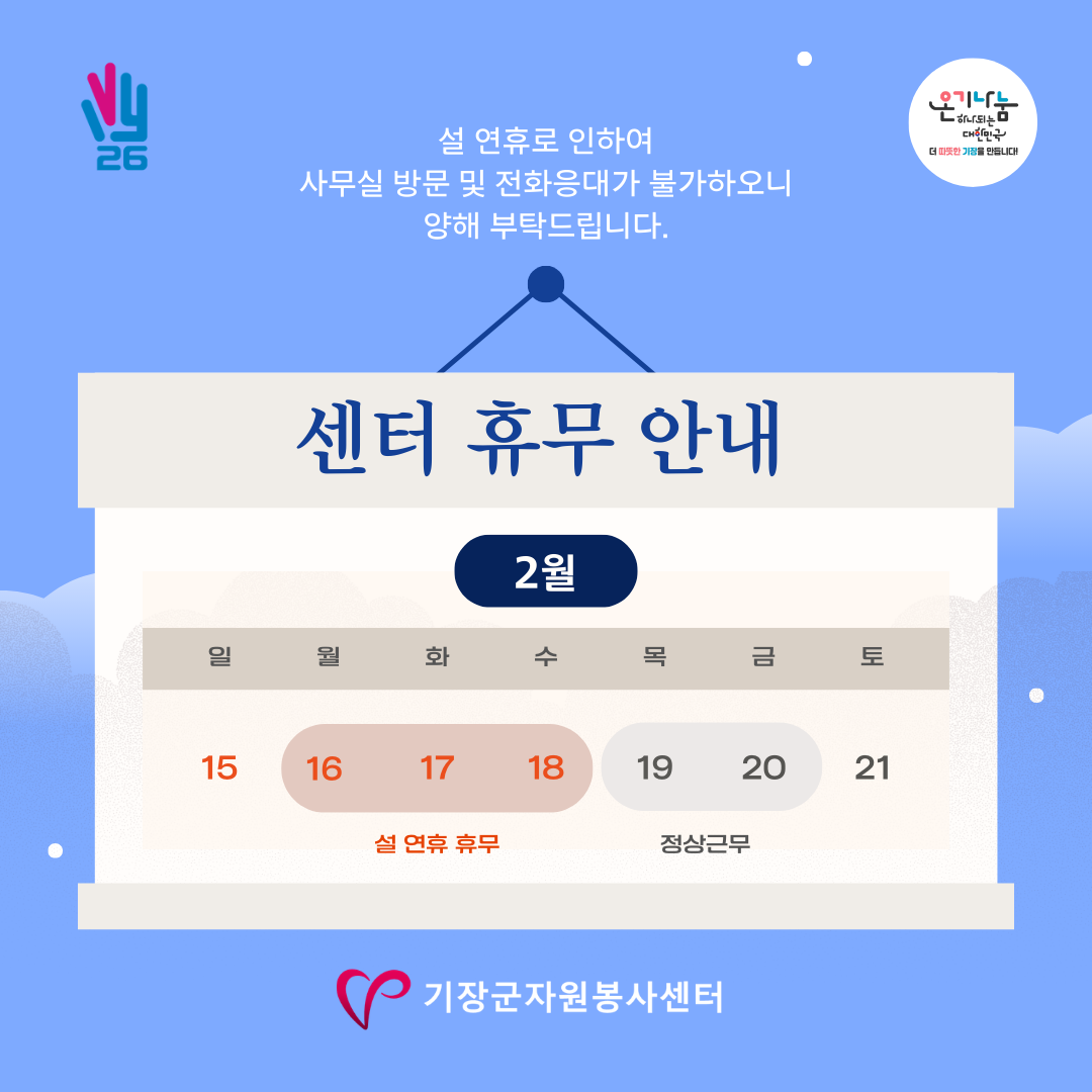 ¾È³çÇϽʴϱî. ±âÀ屺ÀÚ¿øºÀ»ç¼¾ÅÍÀÔ´Ï´Ù. 2¿ù ¼³¿¬ÈÞ µ¿¾È ¼¾ÅÍ ÀÀ´ë°¡ ¾î·Æ½À´Ï´Ù.