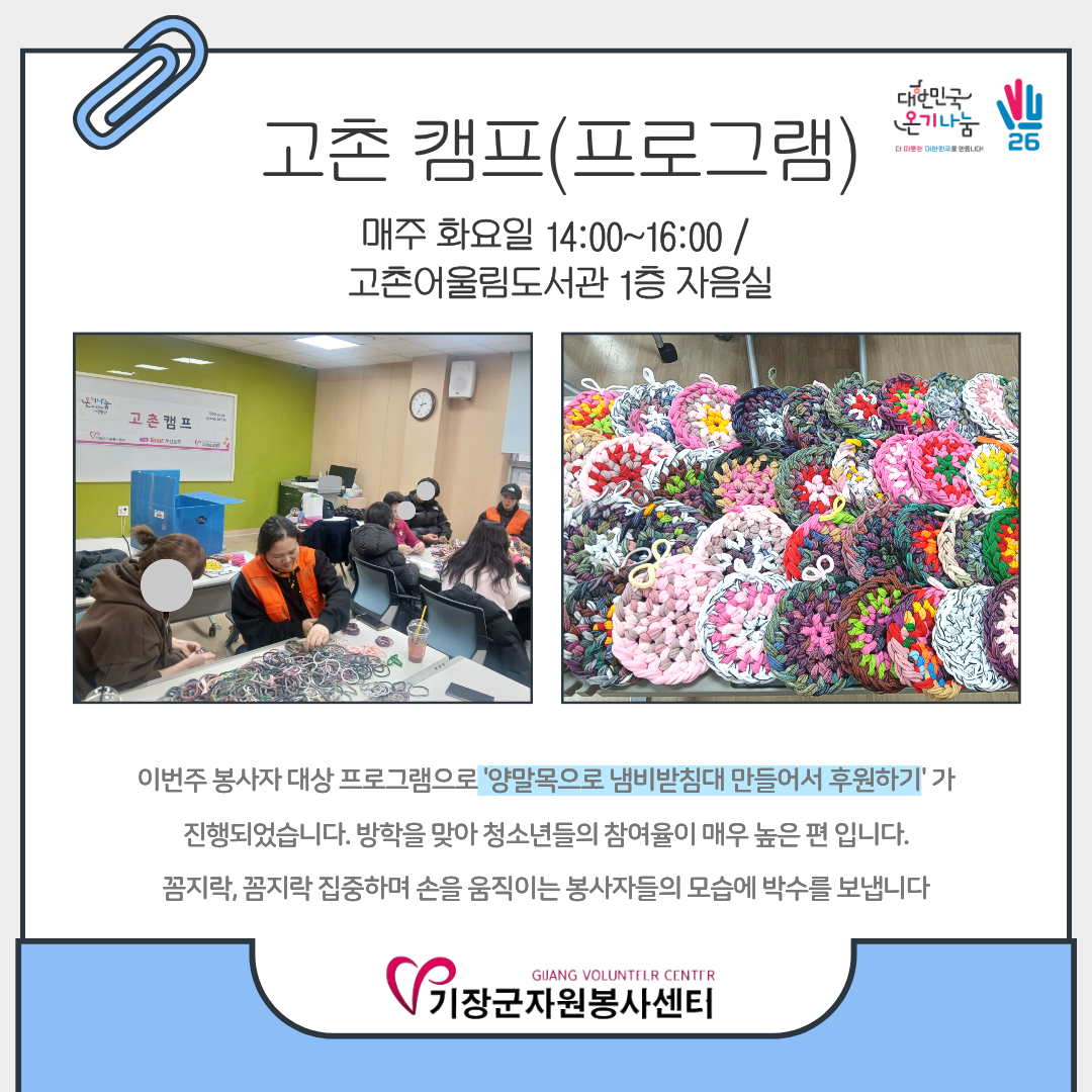 2026³â 2¿ù 2ÀÏ~ 6ÀÏ °íÃÌ Ä·ÇÁ Ȱµ¿ ¼Ò½ÄÀÔ´Ï´Ù ^^