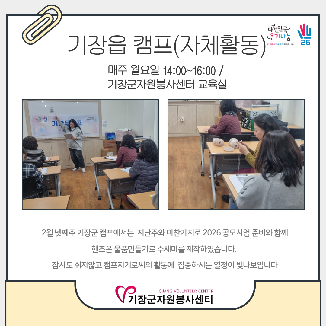 2026³â 2¿ù 23ÀÏ~ 27ÀÏ ±âÀåÀ¾ Ä·ÇÁ Ȱµ¿ ¼Ò½ÄÀÔ´Ï´Ù ^^
