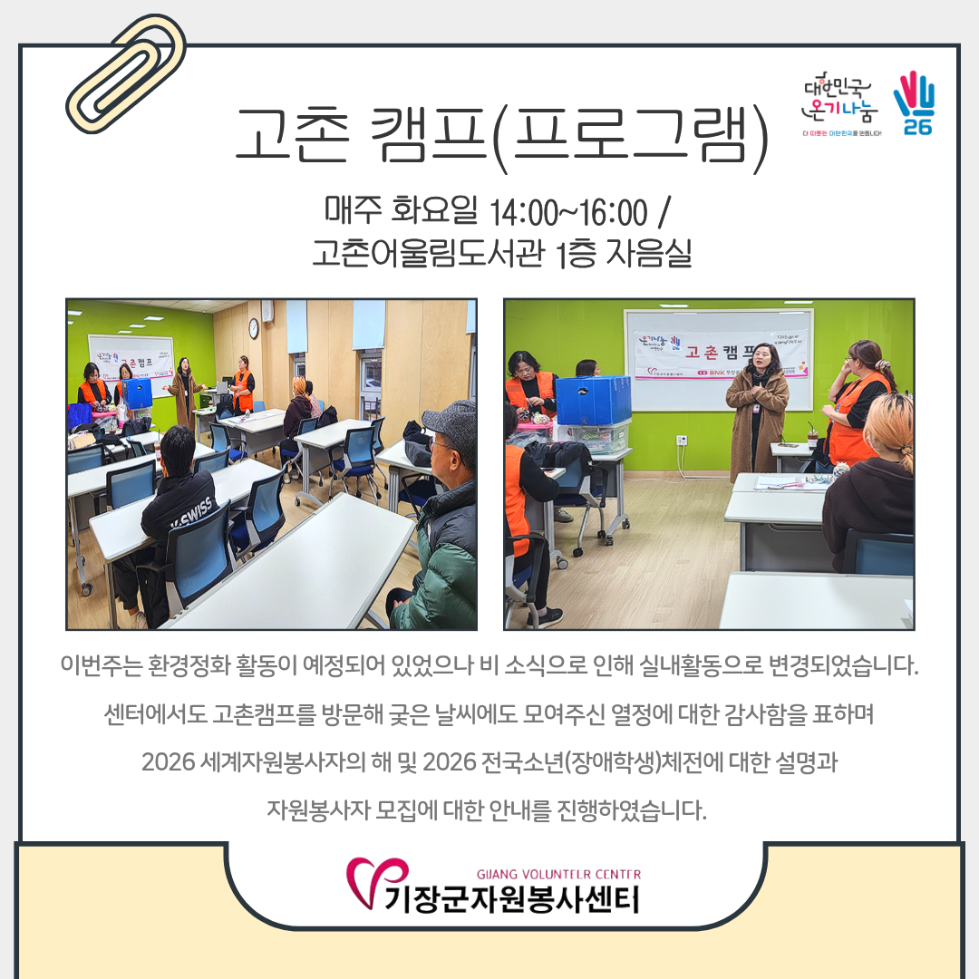 2026³â 2¿ù 23ÀÏ~ 27ÀÏ °íÃÌ Ä·ÇÁ Ȱµ¿ ¼Ò½ÄÀÔ´Ï´Ù ^^